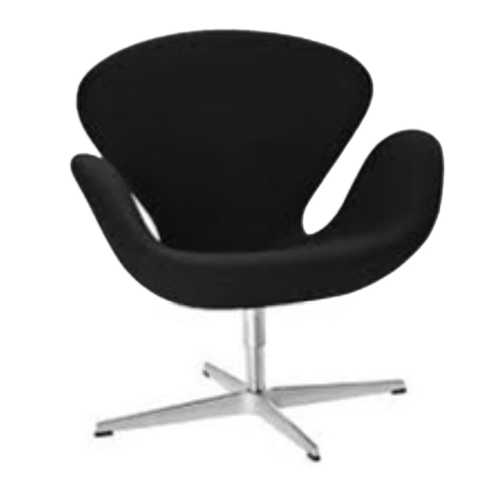 This wonderful chair features a molded fibre glass frame, fire retardant polyurethane foam padding, and covered with wool fabric.Color: black. Wool Fabric. Swivels. Aluminium Base. 1 Year Limited Warranty. Made in...