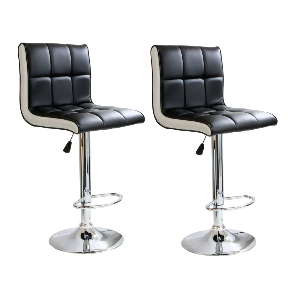 The AmeriHome 2 Piece Two Tone Padded Bar Stool Set is perfect for a game room, garage, man cave, or finished basement. A black seat with white sides and a mirror-like polished chrome base give this Two Tone Bar Stool Set a casual contemporary style. Your guests will have a comfortable place to sit and watch the big game on the 17.5 in wide by 15 inch deep padded black vinyl seats. These bar stools also feature an adjustable seat height of 24 to 32 inches, built in footrests, and a weight capacity of 256 lbs.