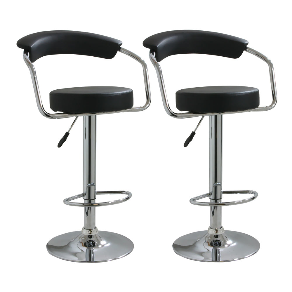 This AmeriHome 2 Piece Adjustable Height Bar Stool Set includes two retro style, adjustable height black vinyl bar stools. This 2-piece bar stool set is reminiscent of the days of diners...