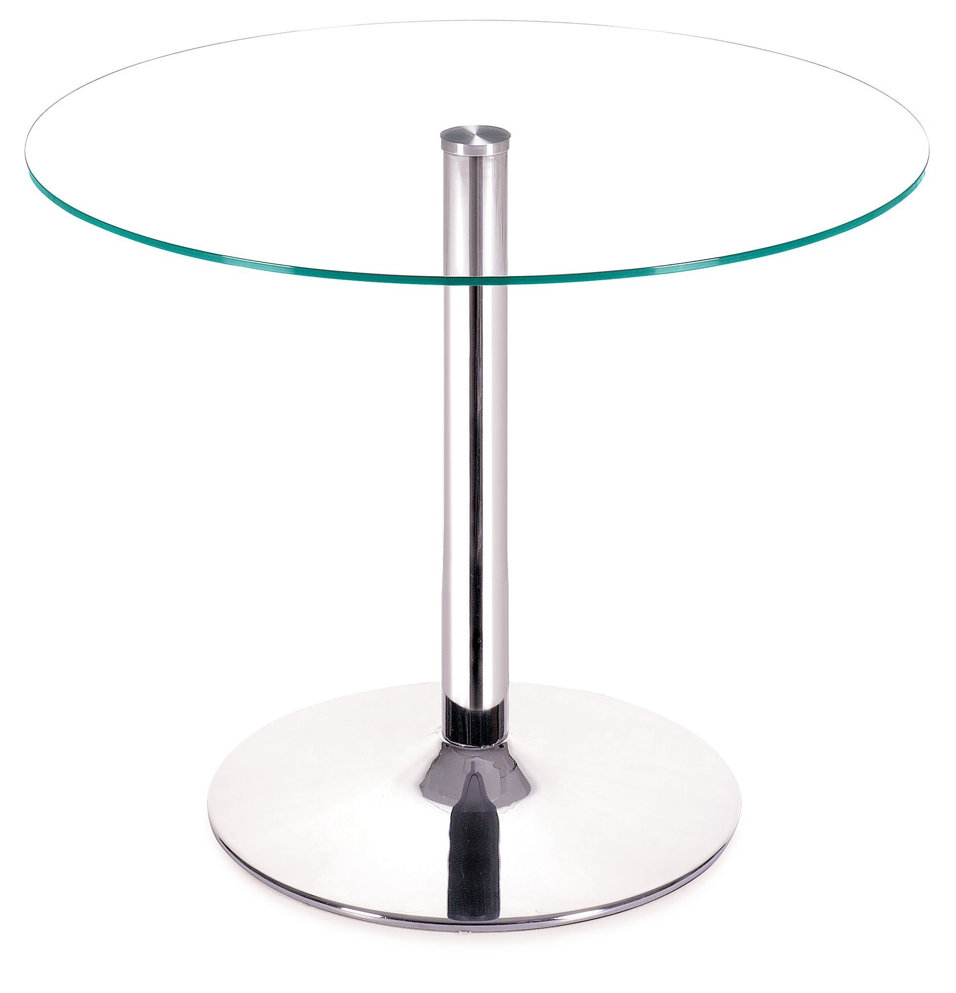 Your classic round dining table gets a modern update with a clear tempered glass top and a chromed steel tube center and base. The Galaxy diningtable brings modern class to any eating area: kitchen, dining, or break rooms.