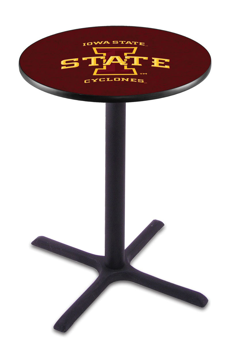 Made for the ultimate sports fan, impress your buddies with this knockout from Holland Bar Stool. This L211 Iowa State table with cross base provides a commercial quality piece to for your Man Cave. You can't find a higher quality logo table on the market. The sublimated, full color, laminate top it attached with a VOC free, environmentally friendly, hot-melt adhesive. The plating grade steel used to build the frame ensures it will withstand the abuse of the rowdiest of friends for years to come. The structure is powder-coated black wrinkle to ensure a rich, sleek, long lasting finish. If you're finishing your bar or game room, do it right with a table from Holland Bar Stool.