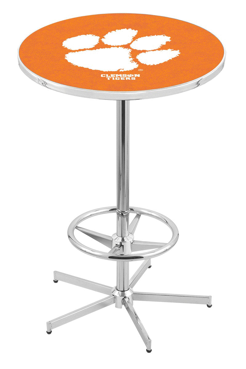 Made for the ultimate sports fan, impress your buddies with this knockout from Holland Bar Stool. This L216 Clemson table with retro inspired base provides a quality piece to for your Man Cave. You can't find a higher quality logo table on the market. The sublimated, full color, laminate top it attached with a VOC free, environmentally friendly, hot-melt adhesive. The plating grade steel used to build the frame ensures it will withstand the abuse of the rowdiest of friends for years to come. The structure is triple chrome plated to ensure a rich, sleek, long lasting finish. If you're finishing your bar or game room, do it right with a table from Holland Bar Stool.