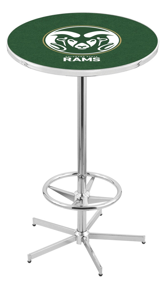 Made for the ultimate sports fan, impress your buddies with this knockout from Holland Bar Stool. This L216 Colorado State table with retro inspired base provides a quality piece to for your Man Cave. You can't find a higher quality logo table on the market. The sublimated, full color, laminate top it attached with a VOC free, environmentally friendly, hot-melt adhesive. The plating grade steel used to build the frame ensures it will withstand the abuse of the rowdiest of friends for years to come. The structure is triple chrome plated to ensure a rich, sleek, long lasting finish. If you're finishing your bar or game room, do it right with a table from Holland Bar Stool.