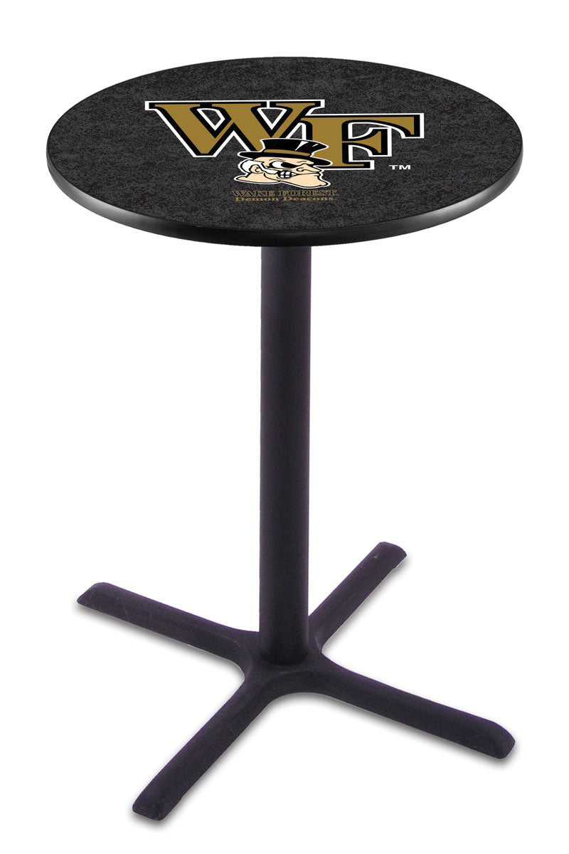 Made for the ultimate sports fan, impress your buddies with this knockout from Holland Bar Stool. This L211 Wake Forest table with cross base provides a commercial quality piece to for your Man Cave. You can't find a higher quality logo table on the market. The sublimated, full color, laminate top it attached with a VOC free, environmentally friendly, hot-melt adhesive. The plating grade steel used to build the frame ensures it will withstand the abuse of the rowdiest of friends for years to come. The structure is powder-coated black wrinkle to ensure a rich, sleek, long lasting finish. If you're finishing your bar or game room, do it right with a table from Holland Bar Stool. Warranty: 1 year frame warranty.