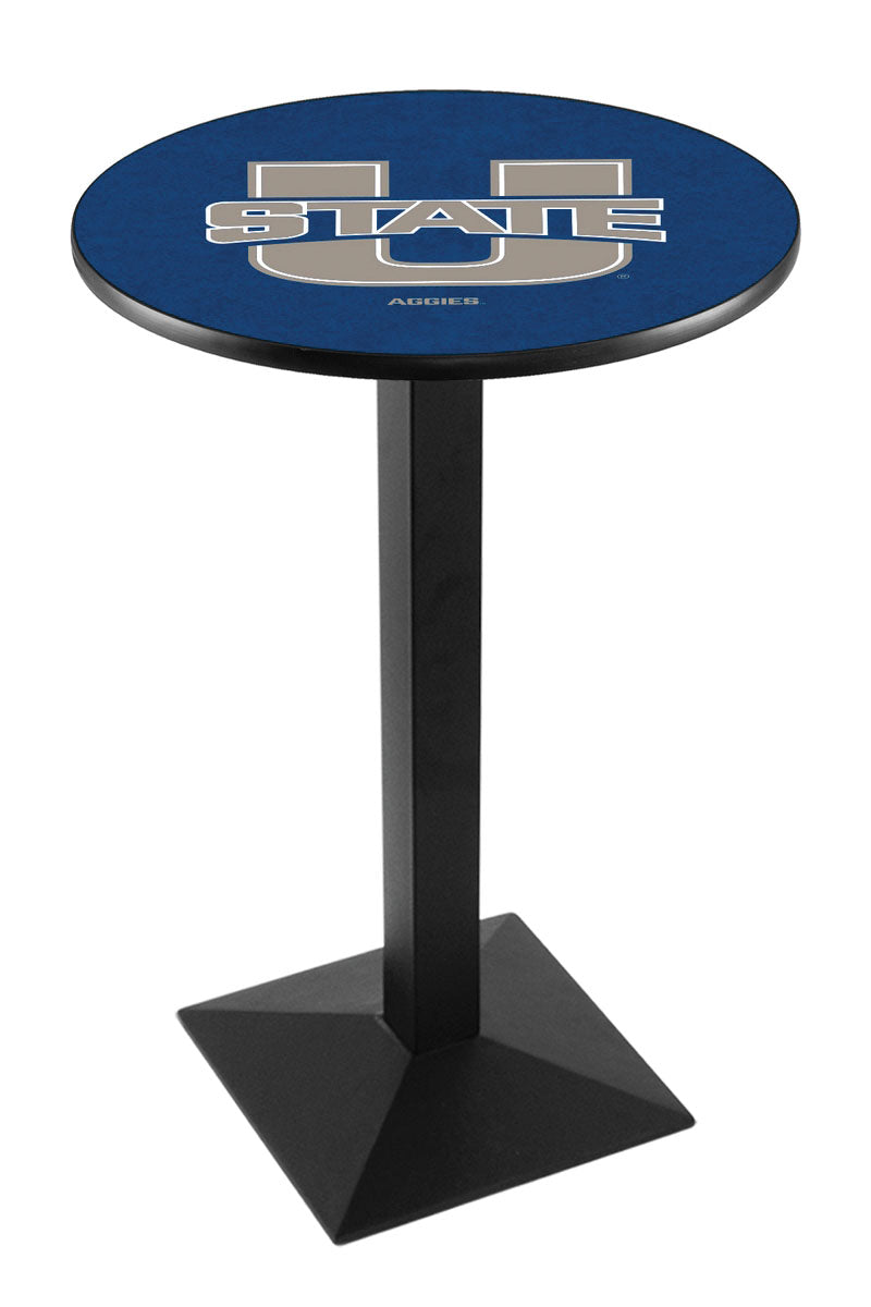 Made for the ultimate sports fan, impress your buddies with this knockout from Holland Bar Stool. This L217 Utah State table with square base provides a commercial quality piece to for your Man Cave. You can't find a higher quality logo table on the market. The sublimated, full color, laminate top it attached with a VOC free, environmentally friendly, hot-melt adhesive. The plating grade steel used to build the frame ensures it will withstand the abuse of the rowdiest of friends for years to come. The structure is powder-coated black wrinkle to ensure a rich, sleek, long lasting finish. If you're finishing your bar or game room, do it right with a table from Holland Bar Stool. Warranty: 1 year frame warranty.