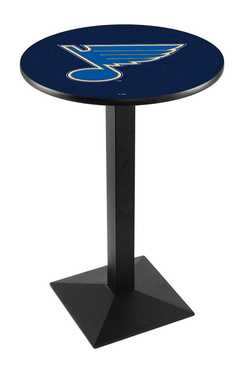 Made for the ultimate sports fan, impress your buddies with this knockout from Holland Bar Stool. This L217 St Louis Blues table with square base provides a commercial quality piece to for your Man Cave. You can't find a higher quality logo table on the market. The sublimated, full color, laminate top it attached with a VOC free, environmentally friendly, hot-melt adhesive. The plating grade steel used to build the frame ensures it will withstand the abuse of the rowdiest of friends for years to come. The structure is powder-coated black wrinkle to ensure a rich, sleek, long lasting finish. If you're finishing your bar or game room, do it right with a table from Holland Bar Stool. Warranty: 1 year frame warranty.