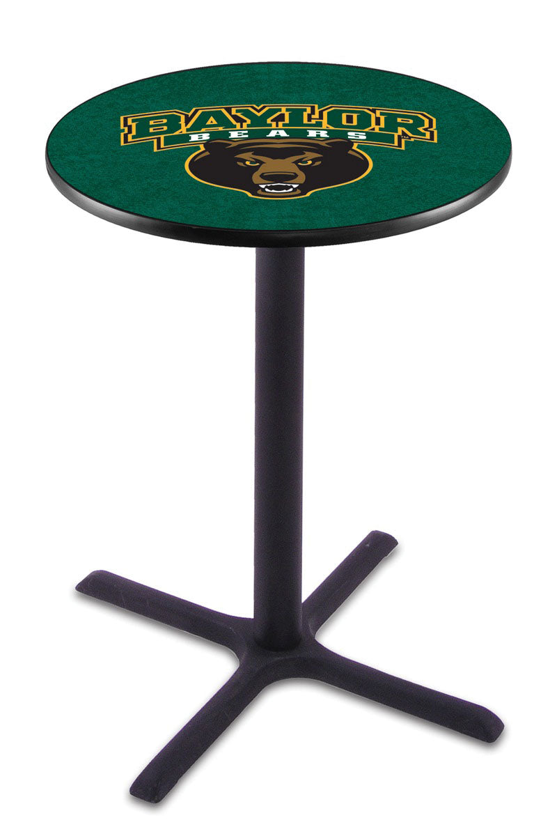 Made for the ultimate sports fan, impress your buddies with this knockout from Holland Bar Stool. This L211 Baylor table with cross base provides a commercial quality piece to for your Man Cave. You can't find a higher quality logo table on the market. The sublimated, full color, laminate top it attached with a VOC free, environmentally friendly, hot-melt adhesive. The plating grade steel used to build the frame ensures it will withstand the abuse of the rowdiest of friends for years to come. The structure is powder-coated black wrinkle to ensure a rich, sleek, long lasting finish. If you're finishing your bar or game room, do it right with a table from Holland Bar Stool.