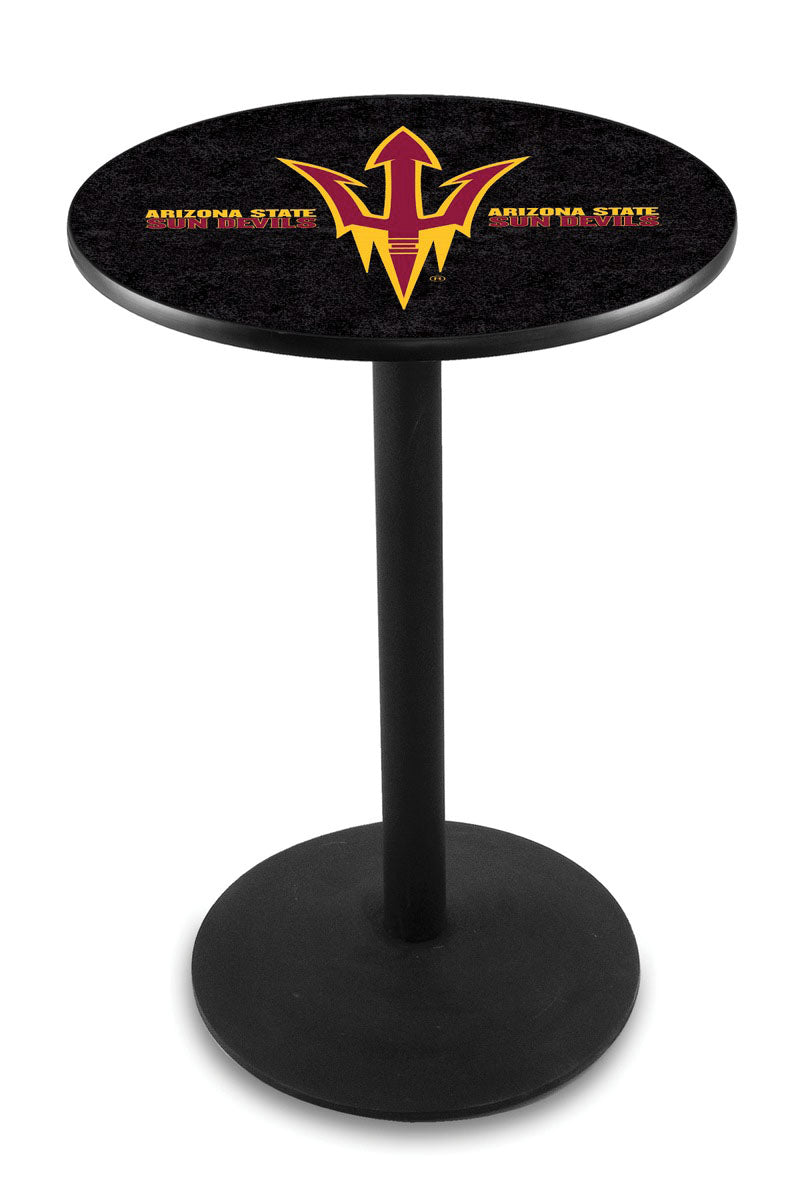 Made for the ultimate sports fan, impress your buddies with this knockout from Holland Bar Stool. This L214 Arizona State table with round base provides a commercial quality piece to for...