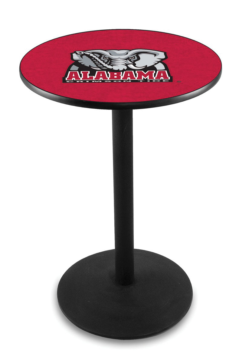 Made for the ultimate sports fan, impress your buddies with this knockout from Holland Bar Stool. This L214 Alabama table with round base provides a commercial quality piece to for your Man Cave. You can't find a higher quality logo table on the market. The sublimated, full color, laminate top it attached with a VOC free, environmentally friendly, hot-melt adhesive. The plating grade steel used to build the frame ensures it will withstand the abuse of the rowdiest of friends for years to come. The structure is powder-coated black wrinkle to ensure a rich, sleek, long lasting finish. If you're finishing your bar or game room, do it right with a table from Holland Bar Stool.
